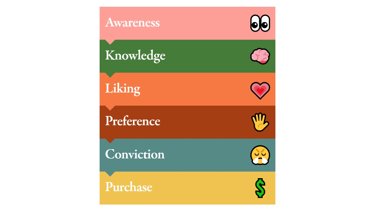 Let’s look at the hierarchy of effects model that expert marketing managers and textbook writers give us: